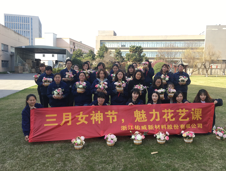 3月8日,為豐富女員工的文化生活,體現(xiàn)公司對女員工的關愛,浙江佑威新材料股份有限公司向全體女員工送上最溫馨的節(jié)日祝福,并舉辦了女神節(jié)插花活動,在美麗芬芳的鮮花陪伴下,大家度過了美好的午后時光。