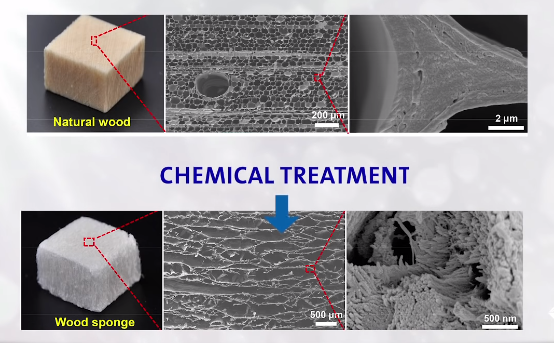 突破性:木材海綿是用化學(xué)品處理,剝離半纖維素和木質(zhì)素而成,可以從水中吸收油脂,吸收量是其自身重量的16-46倍,可重復(fù)使用多達(dá)10次。這種新型海綿在容量,質(zhì)量和可重復(fù)使用性方面超越了我們今天使用的所有其他海綿或吸收劑。